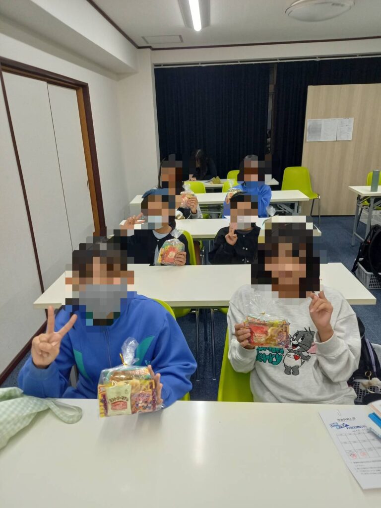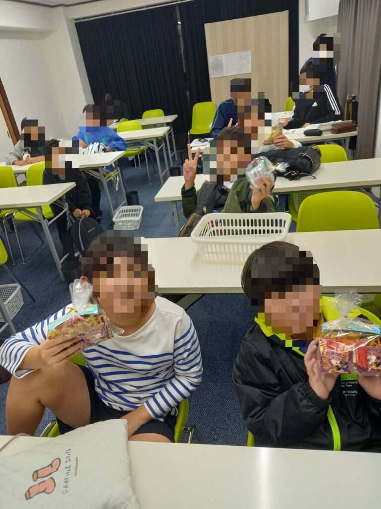 明日はハロウィンということで、今日は小学生の生徒たちにお菓子をプレゼントしました!